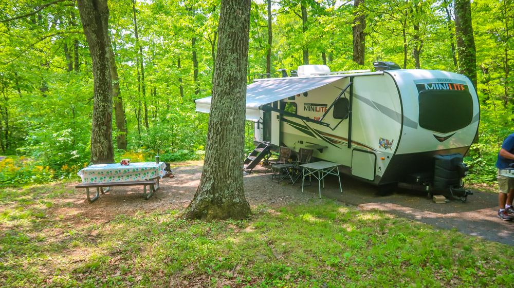 Matthews Arm Campground- Secluded in the thick trees and rolling hills of the Shenandoah National Park, there are no hookups here so be prepared! 165 sites in the 3 loops here. Since this is Bear Country there are bear lockers on the sites.