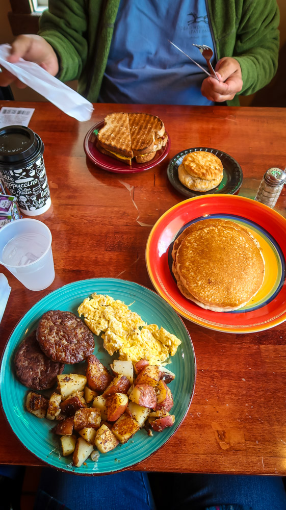 1st stop.. The Apple House in Linden, Va. Frank & Janet have been going to this restaurant for over 40 years and suggested we give it a try. OMG homemade apple butter doughnuts & big chunk apple fritters on the counter, how can I even order! Tim & I shared a big breakfast…eggs, 🍳huge stack of pancakes, 🥞home fries, sausage, toast & sourdough biscuits, and an egg sandwich! Down side they were a Pepsi place (Janet loves Pepsi like I like my Diet Coke)!🥤Lets not forget my to-go order….🤷🏻♀️ yes those apple fritters & apple butter doughnuts had to come home with me, 😱🤣