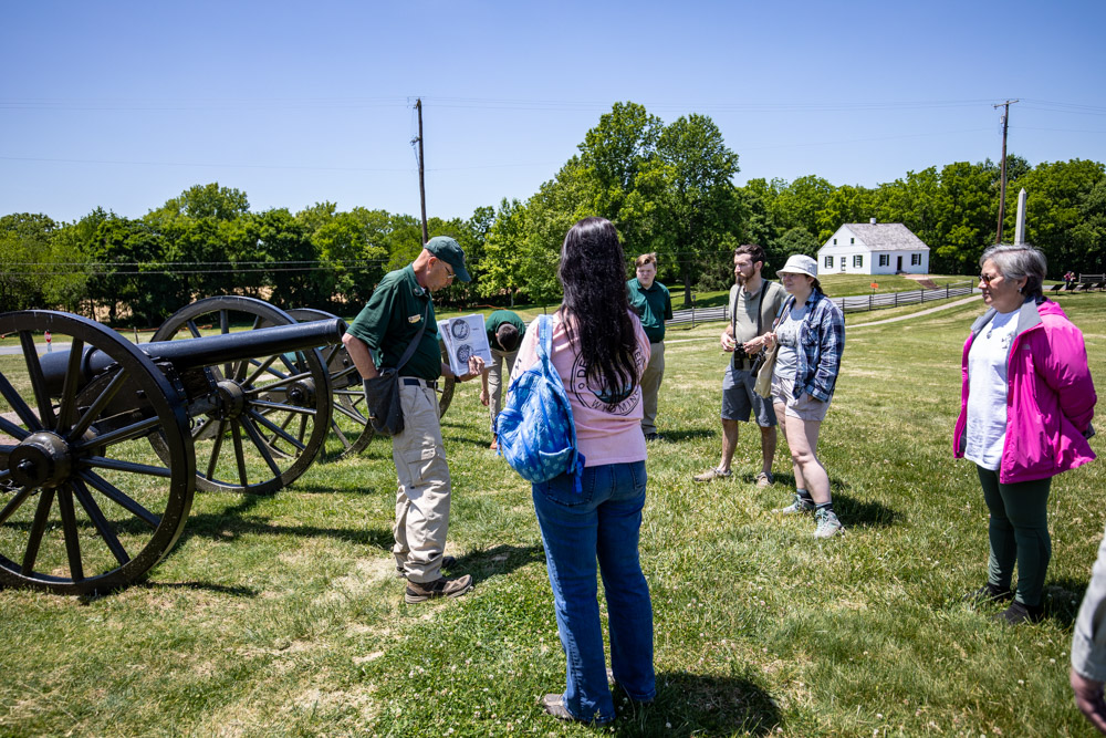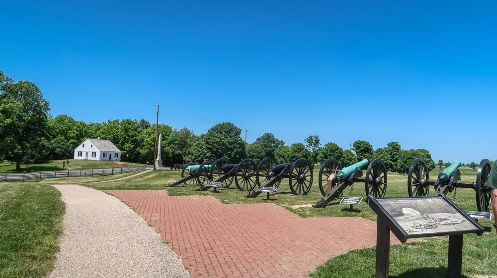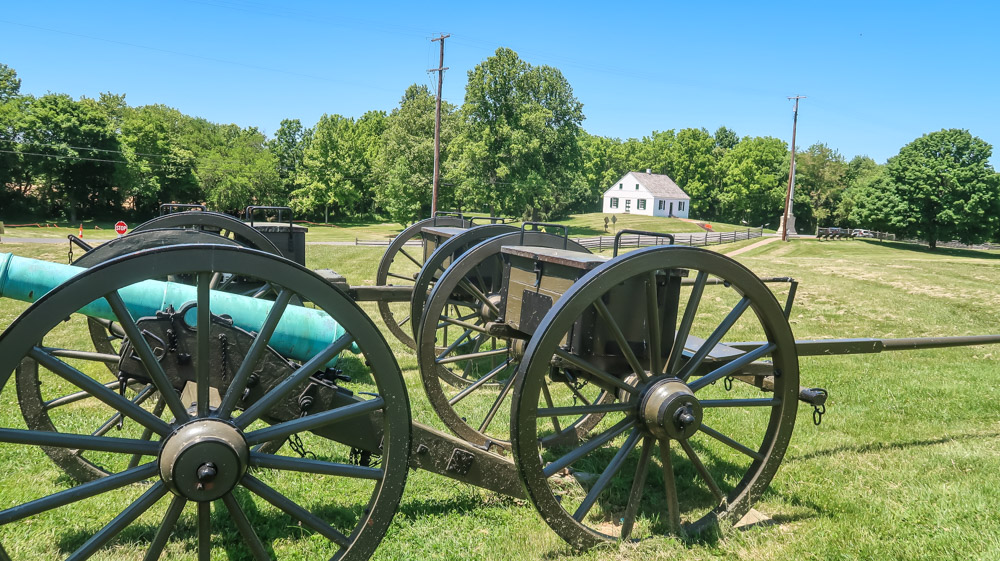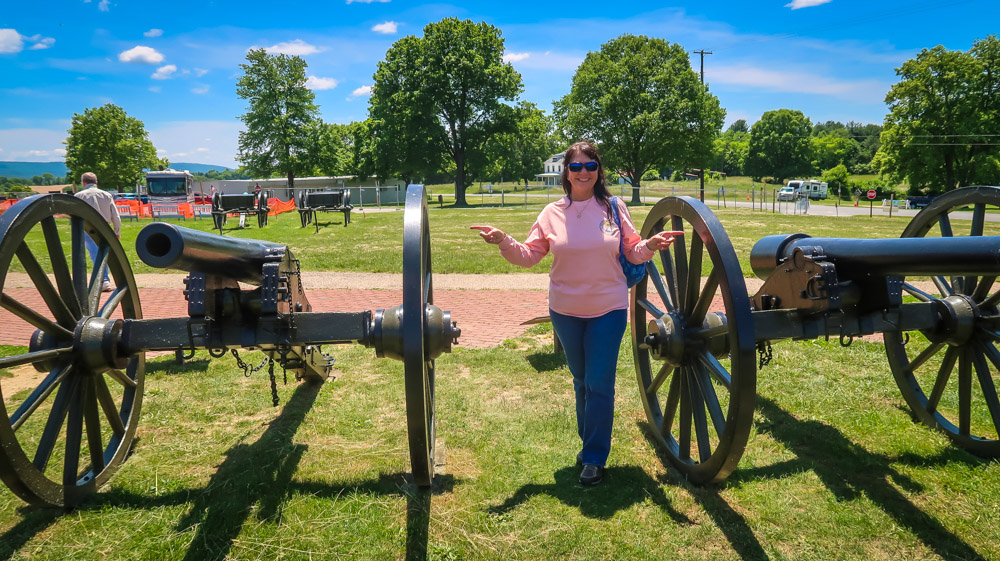 12:38pm now in Maryland. 12:49 Arrived at our 2nd stop! Antietam National Battlefield. Most difficult place to park, especially with an RV due to construction of the entrance road and building a new visitor center! 🤦🏻♀️ Ranger told us about a talk up the hill that a volunteer was doing …all about cannons so you know we’re going! Learned so much from him and then we toured the exhibits in the building, watched the movie then walked around the Battlefield. There was an auto trail but not recommended with an RV. So we left at 2pm after we had our lunch in the truck. 😋 Uncrustables and bananas and we’re on the way!