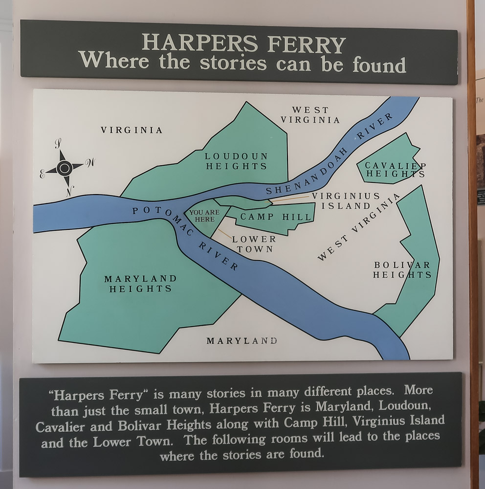 Harpers Ferry, West Virginia – at the confluence of the Shenandoah & the Potomac Rivers, is a historic town with a population of 285 at the 2020 census. Here Maryland, Virginia, West Virginia meet at the easternmost town in West Virginia. During the American Civil War, it was the northernmost point of Confederate controlled territory.