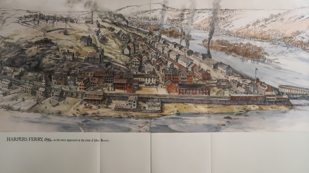 The lower town has been reconstructed by the National Park Service. It was in ruins by the end of the American Civil War, not helped by later river flooding. “The fact that Harpers Ferry was first and foremost an industrial village during the 19th century is not apparent in the sights, sounds, or smells of the town today.”