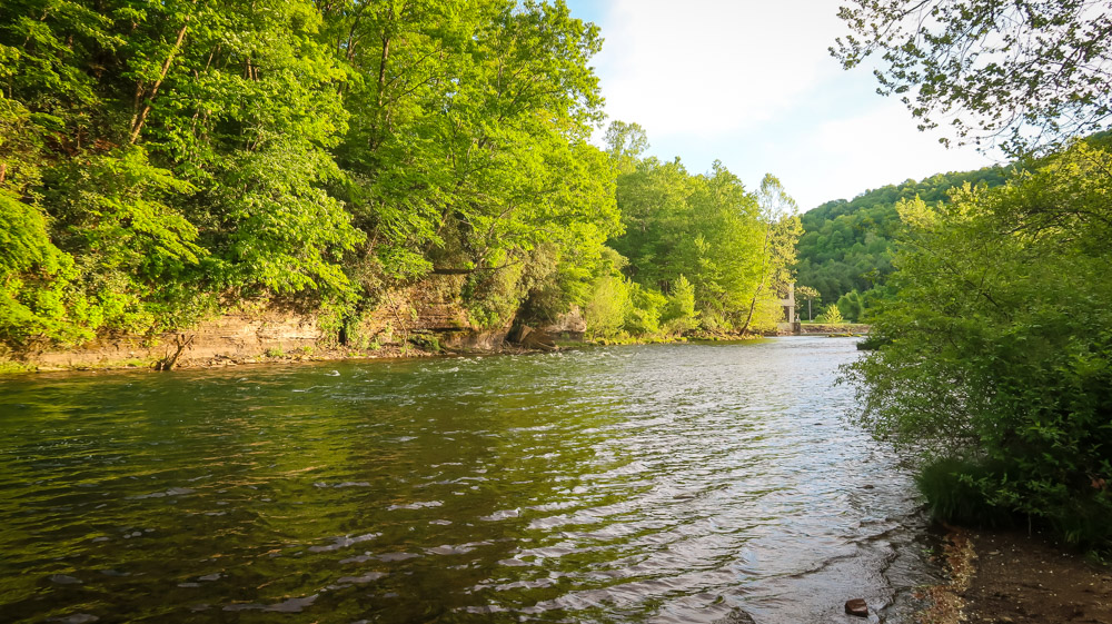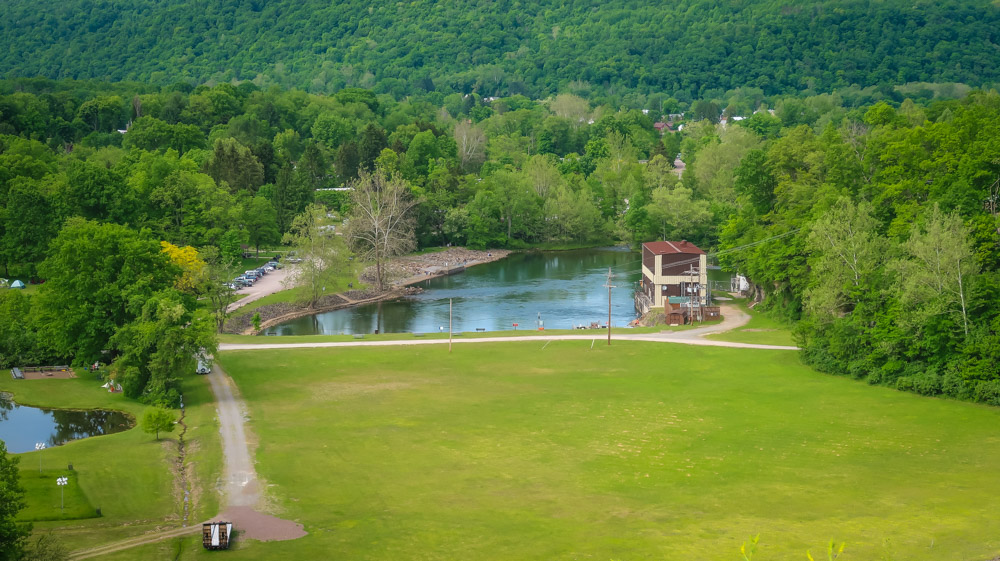 Near Confluence and just a few hundred feet from the Great Allegheny Passage lies Outflow Campground, a public, reservable, fee-based campground at the base of the dam that forms Youghiogheny River Lake. It features 63 sites. The campground is managed by the U.S. Army Corps of Engineers.