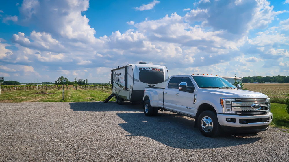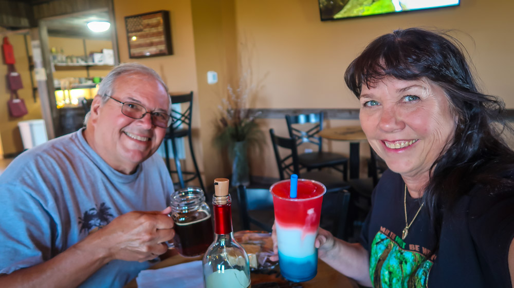 Back on the road and did we see some sights! 2-triple towed FedX trucks! 3:00pm we arrived at our Harvest Host. American Winery & Brewery. 🍷🍺🍷🍺 We backed up into our spot which was amazing with vineyards behind and beside us! It doesn’t open till 4 so we decided to rest up! At 5pm we walked across the parking lot and checked in. I sampled a few wines and decided on the Red, White & Blue slushee, which was powerful! Tim tried 4 different beers throughout the night… Gun Fight, Wanted Dead or Alive, Buffalo Bill & a Stage Coach….not like we had far to walk too! We had a charcuterie board & their bread & dipping oil (which is made by the owner). Amazing! We so enjoyed the young girl Brandy who was the only one working the 4 hours tonight that it’s open! There were only 2 other people inside who stopped in after work for 1 glass of wine. Talk about having the whole place to ourselves! The last hour, the owners came in and sat with us and talked about their place and how he’s been making beer & wine for 50 years now. We then walked back to our camper and later in the night we walked the parking lot, sat on the swing they had but then chased inside by the cool night! 🥶 We traveled 156 miles today.