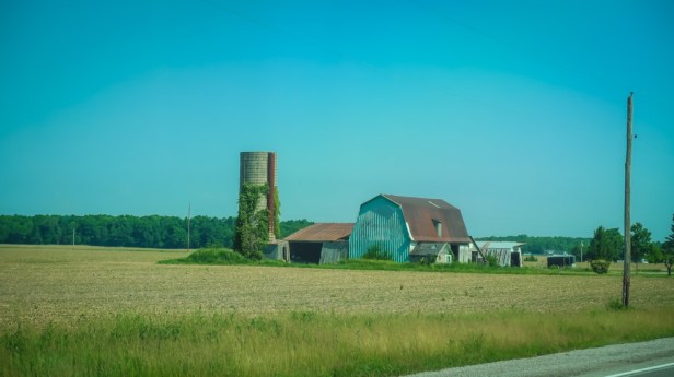 Thursday, day 32 of our trip and it’s 72* in Ruby at 7:45am, beautiful sunny day! 🌞Today’s high expected to be 89* with a low of 62* Last night there were a lot of trains near by and lots of noise from the street. We had breakfast, packed up & were on the road by 10am. Lots of crop fields plowed and some with seeds covered with hay. Dairy farms, big barns, silos and fields of corn, wheat, hay & beans for as far as the eye could see across the hillsides.