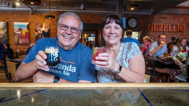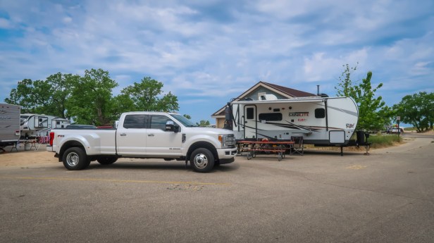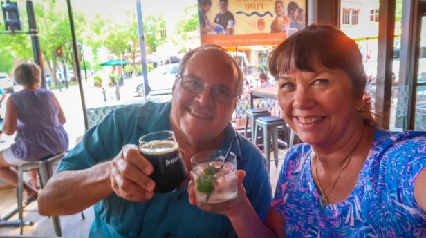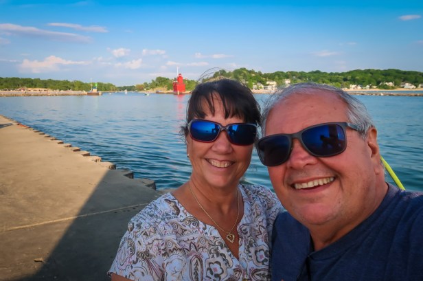 We arrived in Holland! Found our way through this adorable town to Holland State Park, where we checked in then proceeded to Beach Campground on Lake Michigan. Site #332 … it’s a double spot in a parking lot! Yes it’s a completely paved campground! We’re next to the bath house so we only have neighbors on 3 sides. We got all set up then walked to the beach!?…..well to the Lake. Our minds are confused…. We see this big body of water, you can’t see across to the other side, there’s a lighthouse, seagulls but no palm trees, shells, turtle nests, dolphin or shark fins! We walked out on the breakwater watching the boats go through the inlet. Across the inlet stands the Big Red Lighthouse & up on the hill Amway’s heir Dick & Betsy DeVos mansion. What a sight to see. We then drove into the town. Able to get a parking spot….parallel site right in front of a Brewery! Tim had a captive audience as he parked our F-350 dually on the first try! 👏👏 The sky opened up, 🌧️ so we sat in the truck for 10 minutes till it passed. Walked down to the visitor center and the woman helping us gave us maps, wrote on the maps her recommendations and was so very helpful. Apparently we missed the 🌷 tulip festival by 2 weeks and they are currently being removed now. 😔 One of her recommendations was only a few doors down. Hops Brewery. We were given tablets as we were seated. Amazing …complete menu breakdown with pictures and descriptions of each item. Truly amazing. We each had a drink & a charcuterie board. Afterwords we walked this cute town. What an experience in Cherry Republic….samples of every cherry product! Then a Lilly Pulitzer store which was closed but will revisit it tomorrow! 😁 Found ourselves visiting the New Holland Brewery where our truck was parked. We each had a drink then back to the campground for the night. After dinner we walked the beach but it was really cold and windy out! Today we traveled 197 miles!