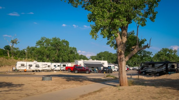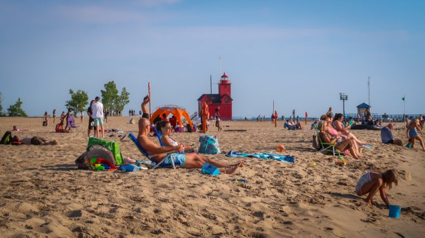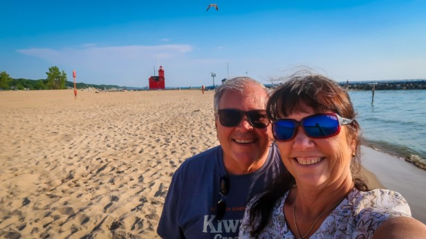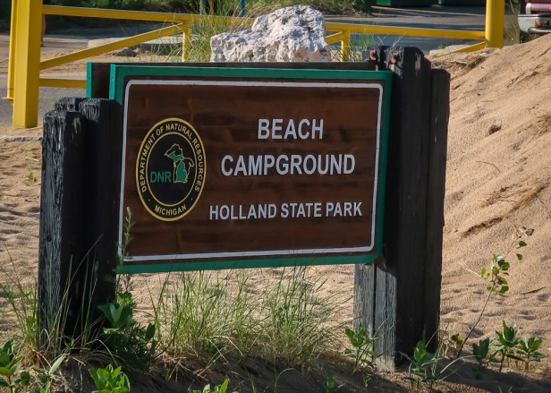 Holland State Park is a public recreation area covering 142 acres It is often the most visited state park in Michigan, receiving between 1.5 and 2 million visitors annually. It is best known for sugar sand beaches, beautiful sunsets and views of the iconic “Big Red” lighthouse. The park has two large campgrounds… we stayed at the beachside one which is a big parking lot on the beach!