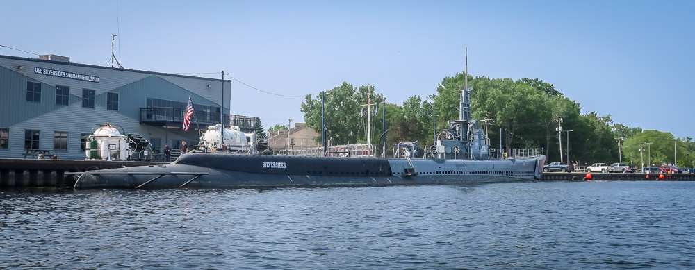 Monday, June 5th ~ 65*, 🌞 sunny, cool breeze and water is flat! We enjoyed our coffee, tea & turkey sausage/egg sandwiches outside enjoying nature at its finest. Perfect day for an adventure. Inflated the kayak & launched it across from our site. We kayaked for 1 1/2 hours down the channel to the lighthouse into Lake Michigan then back down the channel into Lake Muskegon. Passed the museum which had a submarine in the water which was really cool to paddle besides! Our first time ever seeing a pair of swans & babies. Lots of mallard ducks 🦆 on the water. One of the pair of 🦢 swans decided to give us a show by tipping over, butt in the air to get food from the bottom! Funniest thing to see. Back at camp, deflated and cleaned the kayak and Tim nestled it back into the back seat of the truck till its next adventure. 1:25pm we left to explore the town of Muskegon. Downtown has all been redone! Dr. Rolf’s BBQ was recommended by locals at the CG, and there it was. We sat outside to enjoy the sun since there was a cool breeze. Tim enjoyed the smoked brisket and I tried the pulled pork. Delicious! But the cornbread waffles served with honey butter, a specialty made there in house, was fantastic! The waitress told us everything across the street was brand new to the area in just the past 6 months! The new Hockey/Sports Arena was directly across from where we were sitting. Really nice new area. Next adventure was to the local Sam’s Club to stock up on wine etc! We did see the older parts of town then. Had to try a Meier Store as this was suggested to us. Reminds us as a big Walmart. As we drove around we spotted the “Lakes Mall”. Older Mall with most of it empty. 5:20pm back to the CG it’s 73*. We took another bike ride then ate dinner around a campfire. Around 10:30 a big deer walked right past us to the point. Of course I then followed it and as soon as I flashed the light in its eyes it ran towards me (thinking I’m done for) it jumped right beside me up the dune! 🤦🏻♀️ No I didn’t shit 💩 my pants but almost! We traveled 43 miles today.