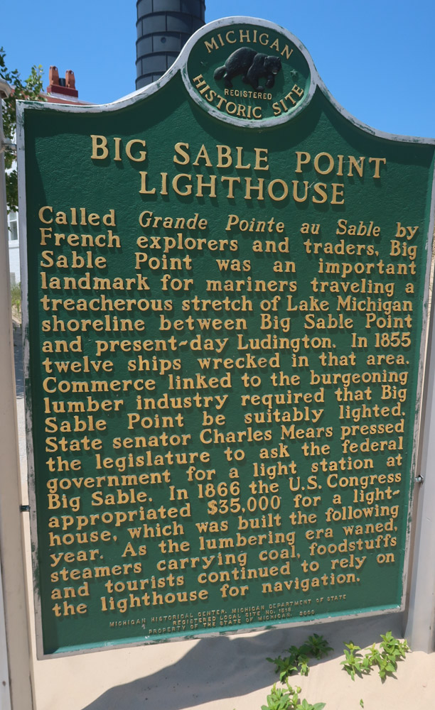 Big Sable Point lighthouse – One of the tallest in the state at 112 ft, black & white striped is on the shore of Lake Michigan. It’s 1.8 miles from the parking lot to the beach. The climb is 130 steps to the top of the tower. Standing on ground formerly known by French explorers as Grande Point au Sable, the Lighthouse Board recommended a beacon be placed in Ludington. In 1867, Big Sable Point Lighthouse was constructed, and on November 1 of that year, mariners as far as 19 miles out on the lake saw a constant white light for the first time.