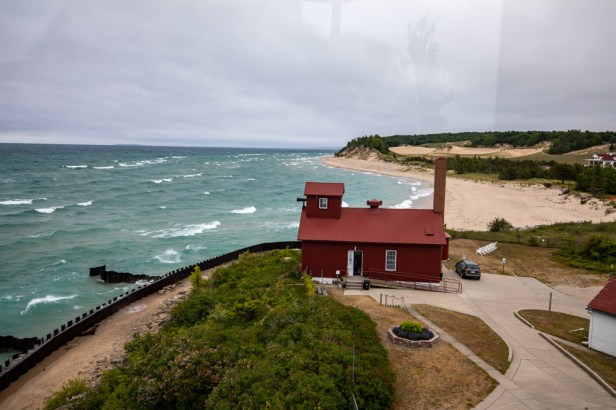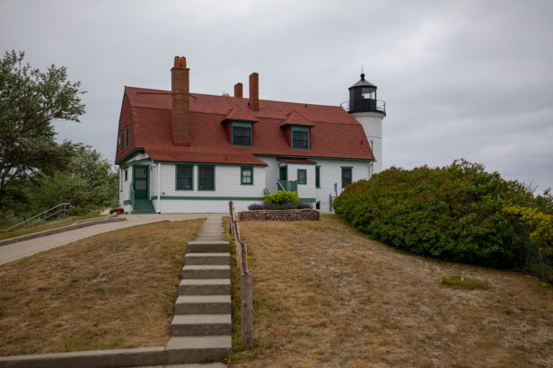 The Point Betsie Light has been in operation for 150 years. Constructed in 1848, height of 39 ft. White tower/red roof. Construction began in 1854, but it was not completed until 1858, and began service in the shipping season of 1859. The lighthouse cost $5,000 to build. In 1875, a life saving station was built for $3,000. The light was originally equipped with a 4th order Fresnel Lens with bullseye, which was upgraded to a 3rd order (with bullseye) in 1880. The latter was visible for 23.9 nautical miles; because of the high placement of the tower. Attached is the lighthouse keepers house and there’s also one of the earliest Life Saving Stations. In addition to the lighthouse, the site presently includes a fog signal building and an oil house. Point Betsie is said to be one of America’s most photographed lighthouses, and the most-visited attraction in area.