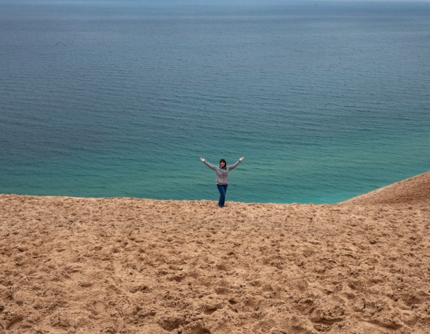 Thursday, June 15th ~ Day 47 Slept in today. Rained during the night and it was very cold out 🥶 We ran the gas heater and there was condensation on the inside of the RV! Today is going to be at least a 2 shirt day and heavy jacket day! Enjoyed our coffee, tea and over easy egg sandwiches before getting ready for today’s adventures. 1:00pm it’s 51* and foggy out. 🌫️ Feels like 47* (according to weather app) and our tire temperature is 46*! Today’s first stop is back to say hi to the cashier at EZ Mart and for our daily Diet Coke’s 🥤 Drove to Pointe Betsie Lighthouse and toured the Keeper’s Quarters & the museum. What an amazing museum. One of the best so far. The Lifesaving Boat – “Betsie” is one display in the museum along with lots of other displays. We then took a private tour of the Keeper’s Quarter then up the lighthouse. Finished with a very cold, windy walk out to the waters edge and finished up about 3pm. As we drove back into Sleeping Bear Dunes we took the Pierce Stocking Scenic Drive & stopped at all the overlooks and did the hikes. When we got to the dunes at Sleeping Bear overlook & Lake Michigan overlook. We hiked a few dunes and what amazing views. Went to Wooded overlook and watched people go all the way down the dune to Lake Michigan. We were able to see Sleeping Bear Dune! We did not take the hike down the sand dune to Lake Michigan….why you may ask….well we’d never make it back up! It’s 1 1/2 miles of strenuous hiking back up in sand! 🤣 We know our limits. Plus it’s cold, windy… did I mention very cold out. 🥶 Back at the truck the heater went on instantly. On the way back to the RV a doe & fawn ran across the street. 🦌 Arrived back to the campground after 5pm. Made some chicken noodle soup with a Costco rotisserie chicken & made grilled cheese sandwiches to warm us up! 🍜 🥪 Had a big campfire & visited with neighbors till it got too cold to stay outside. Traveled 61 miles today.