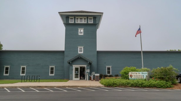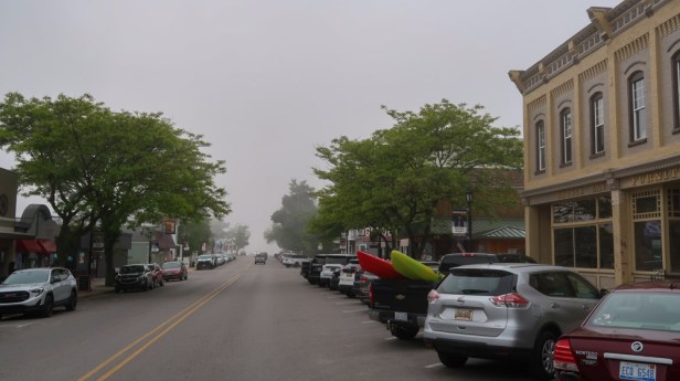 Wednesday, June 14th, 2023 – Day 46 – 52* & sunny 🌞 Heater turned on during the night & it was so comfortable that we stayed in bed till 10 am! We enjoyed our coffee and tea then some oatmeal topped with fresh strawberries 🍓 & pears 🍐. 11am we’re out the door for todays adventures. Drove into Empire to The Philip A. Hart Visitor Center for Sleeping Bear Dunes. There we worked on our Jr Ranger badge, looked at all the great displays & watched the movies about the park. We explored the little town of Empire, which was very, very foggy especially by the water. There were a few deer under some trees that weren’t bothered by onlookers as they got up on their hind legs reaching for leaves to eat. With the fog so thick we decided not to go to a trail out on an overlook so instead we drove into Beulah for lunch at the Cherry Hut! 🍒🥧 No pie today since we had one back at the RV, plus we had an amazing, very filling, cherry chicken salad served on a croissant 🥐 & homemade chips! On the way to the register that’s when the damage came…. I bought a case of their cherry jams for gifts back home!