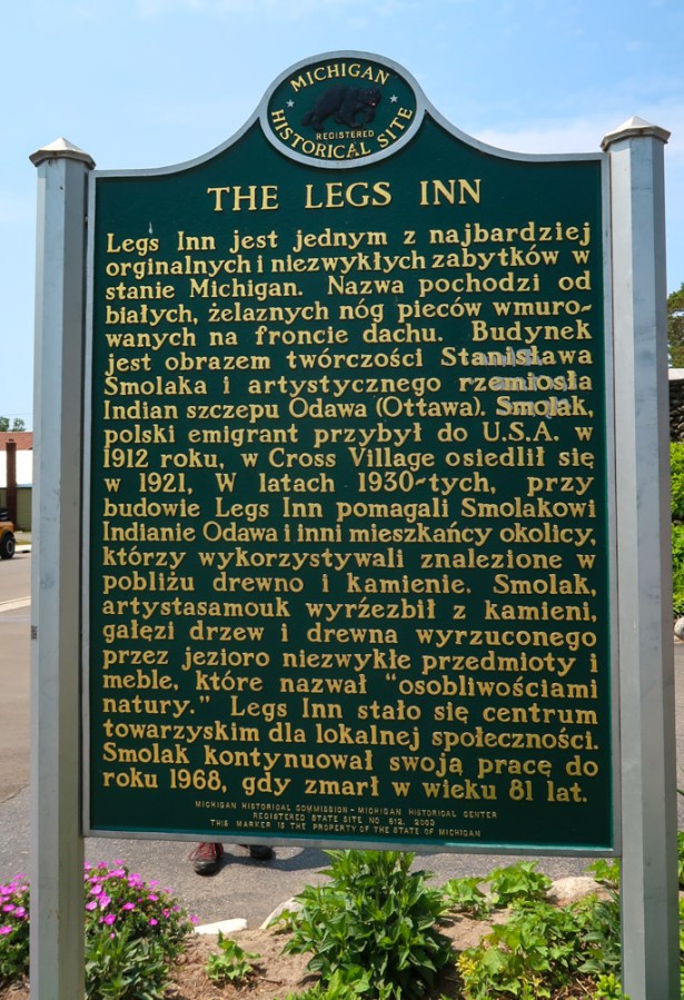 Legs Inn Restaurant ~ Mark Smolak and his brother, Chris, run one of the state’s most iconic eating establishments with their parents, George and Kathy. This unique eatery is on the end of M-119, also known as the scenic “Tunnel Of Trees.” Stone on the outside and wood on the inside, this unique restaurant features stove legs on the roof — thus Legs Inn — and has been open during the late spring, summer and early fall for generations. The decor is one-of-a-kind: a log cabin motif with tributes to the Odawa Indians, who settled this area meshed in a strange but wonderful way with Polish heritage. There are plenty of Legs Inn gift items to take home too. The Smolak family settled here in 1921 and began construction then, and opened this place featuring delicious Polish cuisine. People keep coming back. Stanley was a Polish immigrant who creatively worked on the inn using local timber and stone with local “Odawa” Ottawa Indian craftsmen. Beer lovers will appreciate the large selection of 100 varieties of beer from around the world and from America’s finest microbreweries. There are also Polish vodkas, craft beer, wine, and spirits. The Luksusowa Bloody Mary and Wyborowa Martini are both Legs Inn signature drinks.