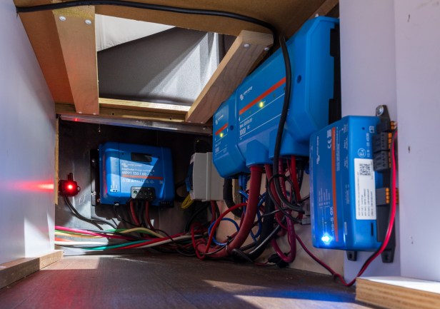 Once home, we got busy getting to know all about our new Airstream and making it our own. Ruby, our Rockwood Mini-Lite was sold to a new owner in Sebastian. Our new Airstream came around the same time as Jimmy Buffet passed, so it was named after a song on Jimmy Buffet’s last album, “Bubbles Up.” Bubbles up is about if the journey is long, bubbles will point you to Home. Sandy was somewhat reluctant to change to an Airstream. So, I had to bargain a little. She has carte blanche on interior design. So, It’s got a lot of Lilly Pulitzer throughout. We didn’t care for the red wood in the interior areas so we added a white and green wallpaper there. Kind of like a Tommy Bahama. We upgraded the privacy dividers to black out curtains to make them look homier and actually have privacy. I set out to make shelving in the wardrobe and other storage areas. We made a ton of small improvements and upgrades to make it comfortable on long adventures. The biggest one was a complete solar upgrade including batteries. We decided on 800-amp hours of batteries and 800 watts of solar panels. We plan on doing many nights at National Parks and Harvest Host locations with no hookups. Stewart of Thompson RV Services did a great job on the solar. We lost very little storage. (@thompsonsrvservices)