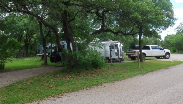 2:10 we arrived at McKinney Falls State Park $6.00 entry Site #62 was a drive thru up on this little hill. Right out our window was our neighbor’s picnic table. Poor layout of sites!🤦♀️ We got all setup, windows open for it was 69* and very windy. We had ground turkey tacos and relaxed for awhile. Took a walk around campground then drove down to the lower & upper falls. Fields of flowers were everywhere. Lots of different kinds of butterflies…I was in heaven. 🦋 We walked around the McKinney Homestead where the stone walls hold the stories of empire slavery, emancipation, farming and family life from 1850-1940. Enslaved people built the homestead for Thomas McKinney, a race horse breeder and one of Stephen Austin’s original colonists. Unfortunately our next stop was the visitor’s center but it was closed, only open on weekends! So I cut a bunch of wildflowers and made an arrangement for our table. After 6 days of boon docking, a nice long shower and a good hair washing never felt so good! Tim crashed early. I worked on the blog for awhile then I watched Mama Mia till midnight! Today we traveled 284.8 miles.