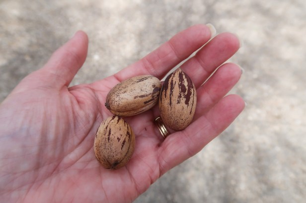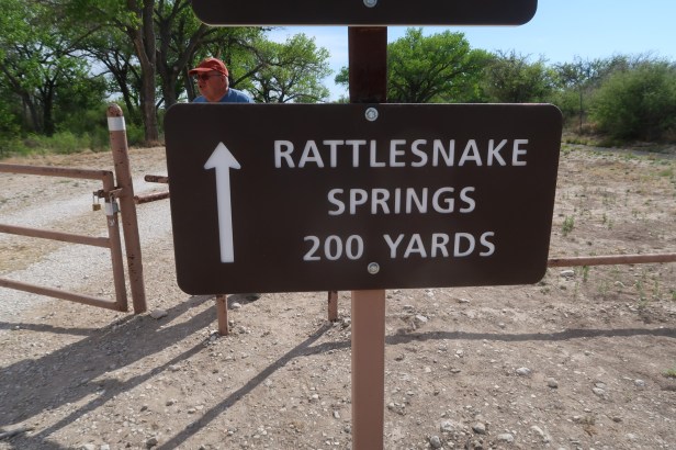 These 2 Florida folks were in ah of the pecan trees! We picked up all the pecans on the ground and canāt wait to make pecan pies. They are delicious! Kelly was happy to see us acting like kids and helping him pick up the grounds for the wedding tomorrow. Curious to explore more before all the guests start arriving, we took a drive and found Rattlesnake Springsā¦only to find a big snake sunning himself and holy shit I almost stepped on it till Tim yelled snake and I ran like a scared little girl! He look ornery!