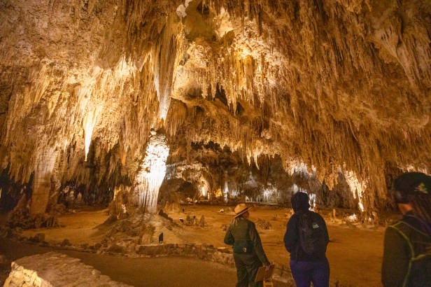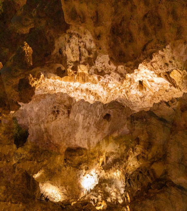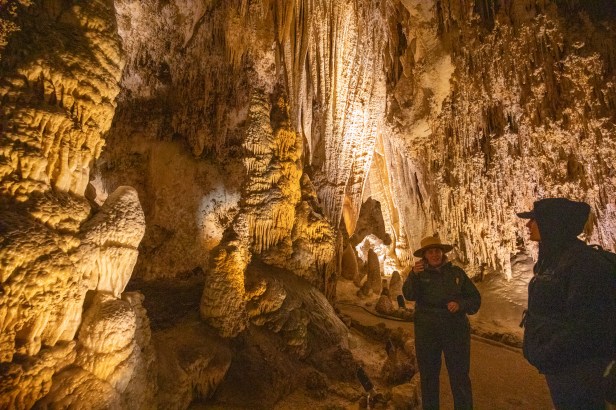 Made breakfast then at 10:30 left for Carlsbad Caverns for we had purchased tickets for a tour. Hot oatmeal & blueberriesš„£ hit the spot! We arrived and checked in at 11am and took the elevator down 800ft to meet the Ranger for our tour of the Kingās Palace Tour. Holy Shitā¦the biggest cave weāve ever been in! More than 100 caves on site, 3 different kinds of bats here too. š¦ Brazilian free tailed bats, they winter in Mexico! The park spans over 47,000 acres and the deepest Cavern is 1037 ft. in the Chihuahua Desert. Our tour was 2 hours with Ranger Margaret who was amazing and a ranger her entire life! Sheās been here for 5 years now and very knowledgeable and has been all over the US at some other amazing parks. We talked with her for awhile after the tour. She then recommended if we werenāt in a hurry to continue on to the Bottomless Pit and the Big Room! We spent a total of 4 ½ hours down in the caves! The most breathtaking, unbelievable cave system we have ever experienced! Though after being down for that long some of the stalactites & stalagmites started looking like Star Wars creatures! š¤£Ā It was cold down there but cold and windy outside. We finished the nature trail so we could earn our Jr. & Sr. Rangers Badges! Yes, our first senior badge! On the way back down the Mountain a very large herd of Big Horn Sheep crossed in front of us and off to the side. Cute babies too. Never had we seen so many at once. Drove to Carlsbad and found a Wal-Mart so we could stock up on Adult beverages and then ordered a Pizza from Dominoās. We stopped at McDonaldās for our Diet Cokes. š„¤ Happy Campers!