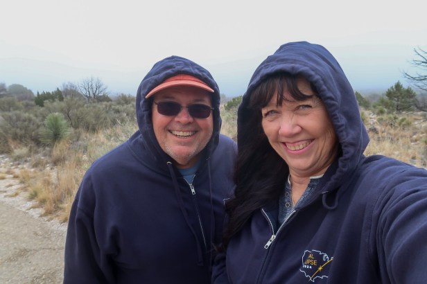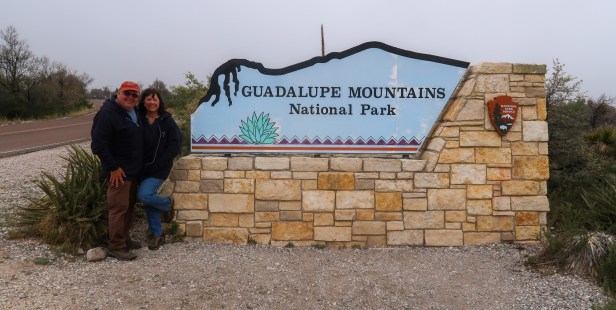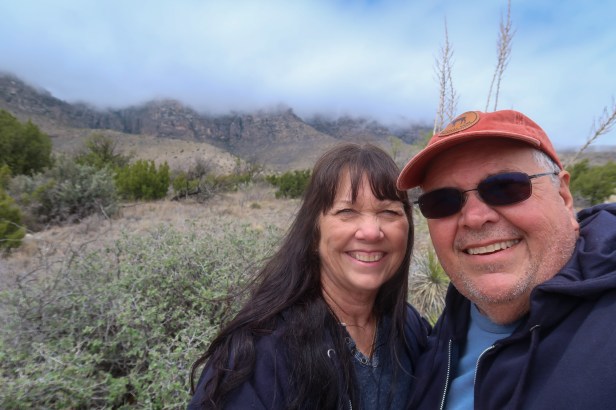 44* at 8:30 am BRRRR Feels like 39* light rain Today is a cereal and fruit morning. We left for a day of adventures and on our way our lots of cows and turkeys along the roadside. On our way to Guadalupe Mountains National Park it was only 42* and we went to New Mexico then Texas at 12:45/1:45 pm! Went through all the exhibits at the visitor center then took the Pinery Trail. The clouds were coming down into the area and became very windy & cold. We earned our Jr Ranger Badge there! Drove to Frijole Ranch History Museum. Toured the ranch and did a couple of the trails. Toured the Ranch-spring (6 gallons/minute} and walked the Manzanita Spring Trail, As we were photographing š· the range it was pretty cool to watch the clouds move up & down the mountain range. We headed back and arrived back in New Mexico by 3:15pm. We had leftover pizza before walking the grounds to pick up pecans. Relaxed outside working on blog & pictures. 5pm and 55* and its suppose to get down to low 40ās. Ā Traveled 65 miles today.