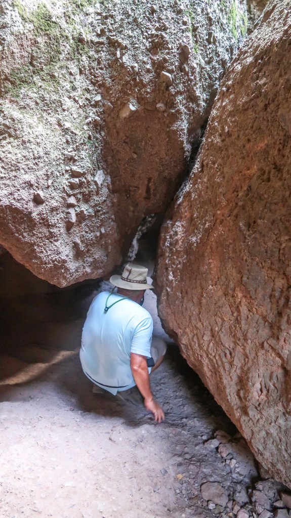 Sunday ~ Heater was on most of the night! 🥶 7:30am 49°. Sunny 🌞 Slept in and relaxed. Ahhh…feel so much better! Made ☕️, 🍵,bacon, eggs & sausage. As I was cooking, I watched outside my window and door 4 wild turkeys 🦃 and 2 deer. 🦌 Lots of rabbits, squirrels and chipmunks all over our site too! Got ready for our day then walked up to the park office to get our passport book stamped and had done our Jr Ranger book online and instructed we needed to drive up to the front gate and see the ranger there! So, we did! We inquired about the pool and crowds yesterday and told that the National Park bought the old campground and since it gets so hot here, they decided to keep it for the locals! 1:45pm it’s 74° sunny with a cool breeze. Took a trail behind the campground to an old barn. On a ranch, which looks to be a great place for night sky photography! 6:10 we drove up to the old entrance of the park to hike Bear Gulch Caves and see the reservoir and High Peaks Trail. We also did Moses Spring Trail and down to a Bat Cave which is closed because they are breeding, and you could sure smell them. To get down there I had to climb up and over and through narrow rock formations!!! Our hike took us 1 hr 40 minutes with an elevation gain of 529 feet. We got back to the RV around 8:15pm. We were greeted by lots of California Quails, squirrels and even a Jack Rabbit with his long ears! Grilled chicken and veggies! Traveled a whole 5 miles today.